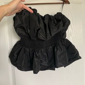 Cherry cloth strapless Black Ruffled tube Top