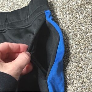 Comfortable NBA joggers with black and blue design. Features team logo. Perfect for active kids. Missing Draw string, please see photos for measurements and more