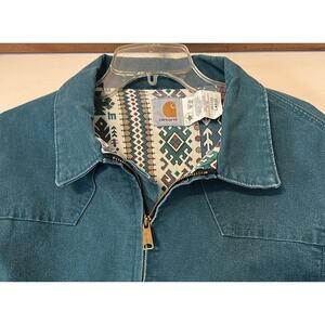 Vintage LARGE Carhartt Aqua Blue Aztec Lined Santa Fe Jacket JS1155