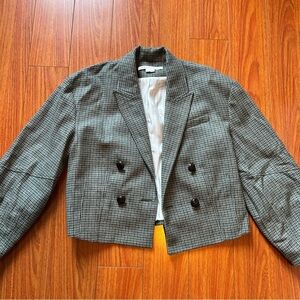 Veronica Beard Sybille Cropped Houndstooth Wool Blend Blazer, Size: 6