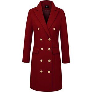 Women's Maple Red Double-Breasted Wool Midi Trench Peacoat for Fall & Winter
