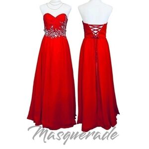 MASQUEDARE red strapples long evening prom dress size 3/4