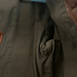 Worn in and comfortable. 100% leather and the lining of the bodice is 100% cotton. Some discoloration on the lining (shown in the photos).