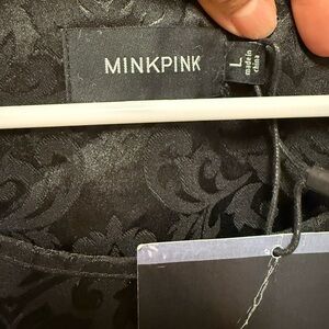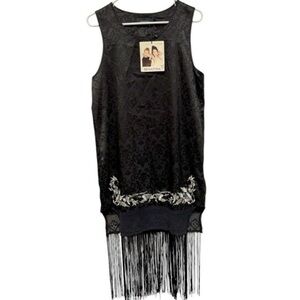 NWT MinkPink Women’s Black Tank Embroidered Dress With Crochet Bottom Tassels Hem Fleur De Lis pattern L
