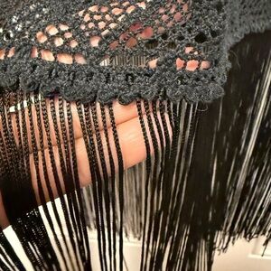 MinkPink Women’s Black Tank Embroidered Dress With Crochet Bottom Tassels Hem L