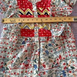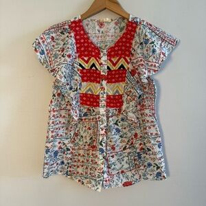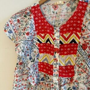 Let Me Be Vibrant Patchwork Blouse with Ruffle Sleeves, 100% Cotton, Size 2