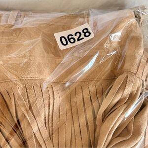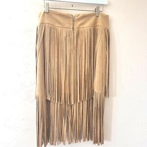 VOCAL Tiered Fringe Faux Suede Knee Length Skirt Size L Tan Western Boho NWT