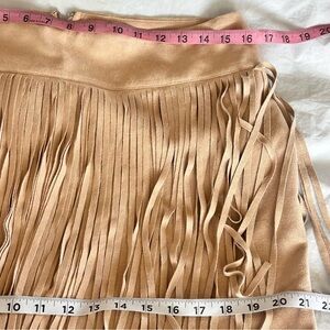 VOCAL Tiered Fringe Faux Suede Knee Length Skirt Size L Tan Western Boho