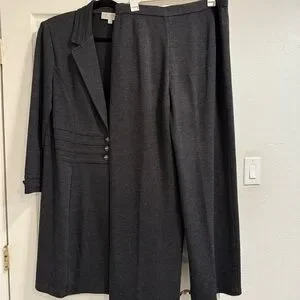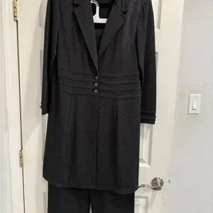 St. John Collection Santana Knit Jacket Pants wide leg Set Black Wool Blend