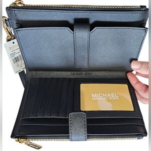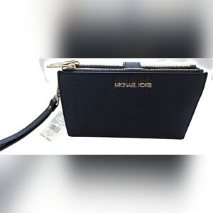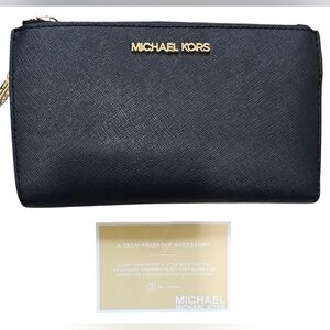 NEW WITH TAGS! Elegant black wristlet by Michael Kors. Features a sleek design with a wrist strap.