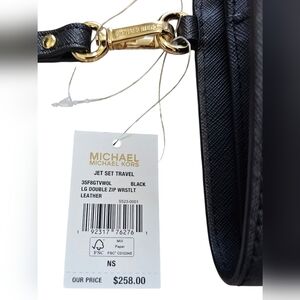 Michael Kors Black Jet Set Travel, LG Double Zip Wristlet Leather, New With Tags