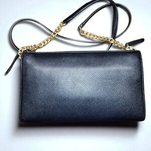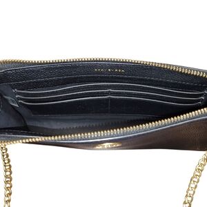 Elegant black crossbody bag. Features gold chain strap. Iconic Tory Burch logo. EUC with dust bag
