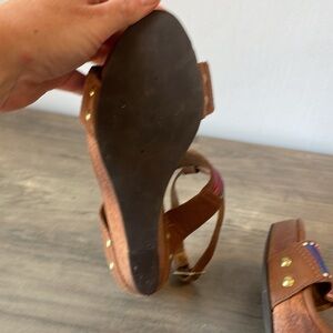 Cynthia Vincent, wedge ankle strap leather platform rainbow sandal, size 7.5