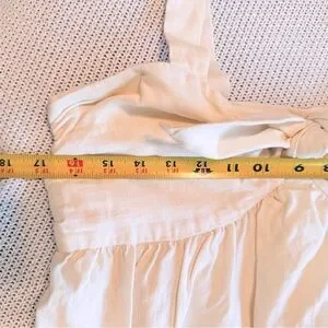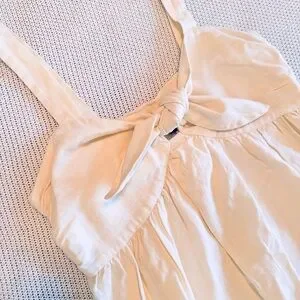 Elegant off white linen midi dress with bow detail. Sleeveless design. Fully lined, pockets, side zipper. Perfect for summer occasions. Great for Spring & Easter too!!