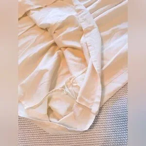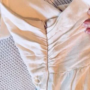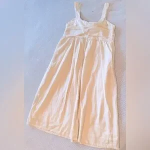 WHO WHAT WEAR Linen Cream Off-White Midi Dress w Tie Bow Chest