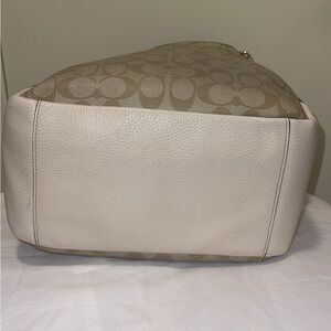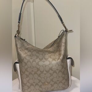 Coach Signature Tan and White Hobo Shoulder Bag 11 3/4 x 10 3/4 x 5 1/4