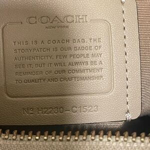 Stylish Coach hobo bag with signature pattern. Tan and white color scheme. Perfect for everyday use.