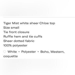 Tiger Mist Sheer White Chloe Lace Blouse Sz XS