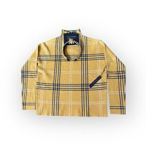 Tahari Plaid Mock Neck Sweater Top Set NWT Yellow M w/ Matching Headband