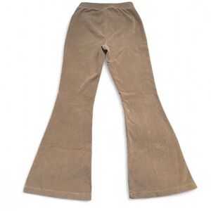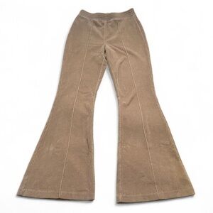 Aerie “Groove On” pull-on flare pants in a brown/tan shade. Made from a soft cotton/polyester blend with a velour corduroy texture. High-waisted with a flattering flare leg and lots of stretch for comfort.
