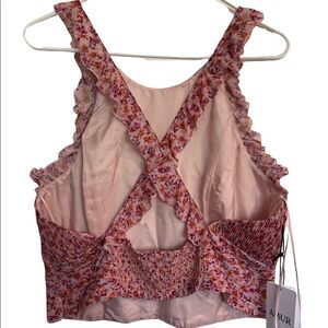 Amur Caelynn Floral Smocked Ruffle Cross Back Top .Size XL