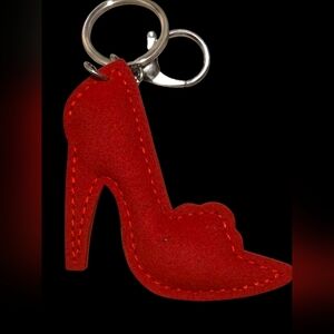 Sparkling red rhinestone high heel keychain with silver accents. Perfect for adding a touch of glamour to your keys.