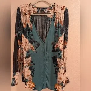 Free People Mikayla Floral Print Tunic Top Green XS