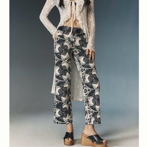 MOTHER The Rambler Zip Ankle Mid-Rise Straight-Leg Jeans NWT Curlycue Black and White