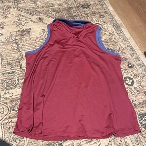 Stylish sleeveless polo by PGA Tour. Burgundy body with lavender collar. Perfect for golf or casual outings.