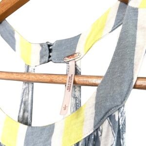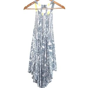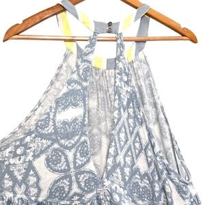 Free People Tunic Blue White Yellow Paisley Halter Neck Tiered Tank Top Size L