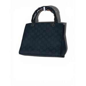 Authentic Gucci GG Canvas Bamboo Handle Satchel Black Monogram Black Luxury