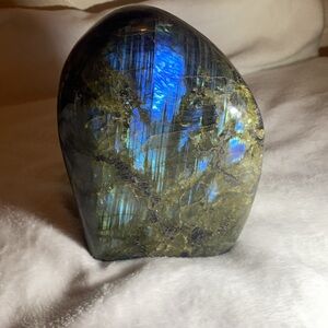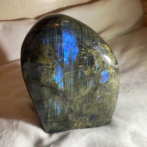 This gorgeous, oversized Labradorite slab is much heavier than standard pieces and features brilliant flashes of blue on both sides. A true must-have for collectors, energy workers, and crystal lovers alike!