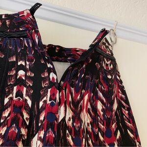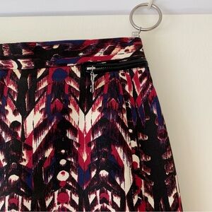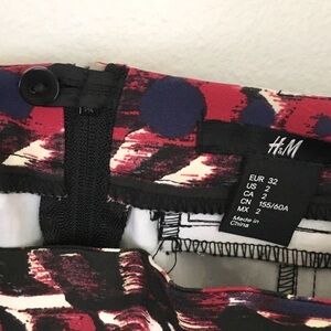 H&M dark abstract print mini skirt with faux leather trim