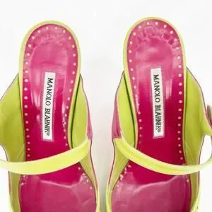 Manolo Blahnik Vintage Lime Pink Wingtip Mary Jane Mule Heel