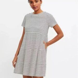 NWT LOFT Striped Tiered Crinkle Cotton-Modal Mini Dress with Pockets Petite