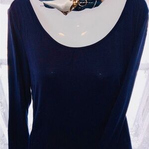Elegant Women's Satin Dark Blue and white Scarf With Chain print