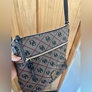 VTG 2000’s Dooney & Bourke Monogrammed Grey/Red Shoulder Crossbody Bag, K9187561