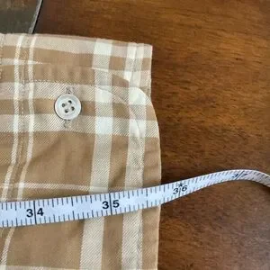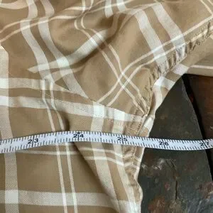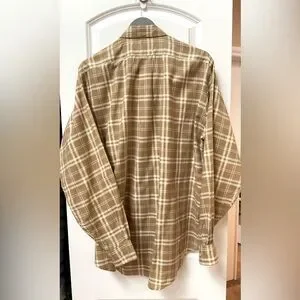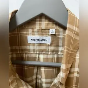 Alberto Aspesi Cotton Plaid Shirt. 100% Cotton in Tan & White. European size 42/US 16 1/2 Neck, measures a 50” Chest x 35/36 Sleeve x 32” Length. In Excellent Used Condition