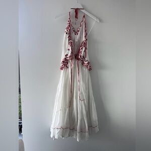 Add the most special touch to your done-in-one style with this effortless midi dress featured in a flowy, halter-neck style with colorful embroidery throughout for a forever-femme finish.