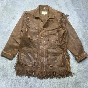 Vintage Scully Leather Jacket Unisex 40 (L) Brown Fringe Cowgirl Western Rodeo Buttons Pockets Lined
