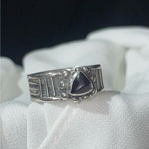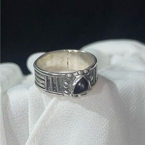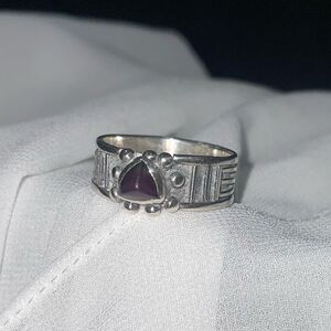 This elegant Sterling silver ring features a striking deep dark colored Amethyst stone, perfect for adding a touch of sophistication to any outfit.