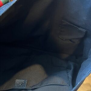 Classic black tote with iconic red and green straps. Open top no zipper closure.