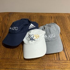 Set of three caps featuring Adidas and ATG logos.