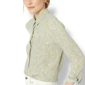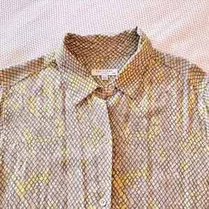 EQUIPMENT Grey & Yellow Button Up Shirt Geometric Snakeskin Blouse Silky Top