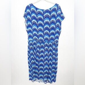Lilly Pulitzer Blue Curves Print Knit Sadie Dress Size XL Smocked Elastic Waist