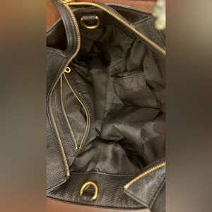 Excellent shape with lots of life left. Leather has been cleaned and conditioned. Color is black with gold hardware - zippers fully working and clean interior.