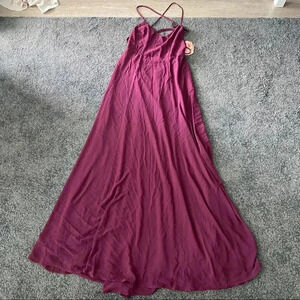 This dress has no flaws, it’s stunning! (My friend changed the dresses for the wedding). Lined, flowy, 100% polyester.