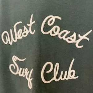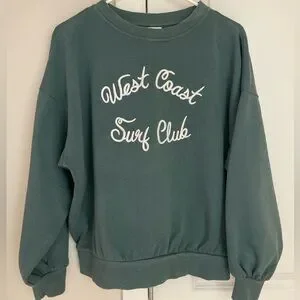 Oversized Green Pullover Sweatshirt Embroidered with “West Coast Surf Club” XS
