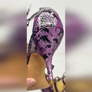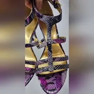 Coach Hayden Leather Violet Pink Blk Python Print Open Toe T-Strap Heels Size 7B