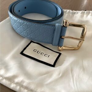 Gucci Light Blue Embossed Belt with Gold Buckle